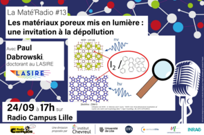 Avec la Maté'Radio, chaque dernier mercredi du mois en soirée sur Radio Campus Lille, durant l'émission Quoi de neuf ?, une doctorante ou un doctorant d'un des laboratoires de l'Institut Chevreul vient expliquer ses travaux de recherche et raconter son parcours et son quotidien. Retrouvez tous les replays ci-dessous.